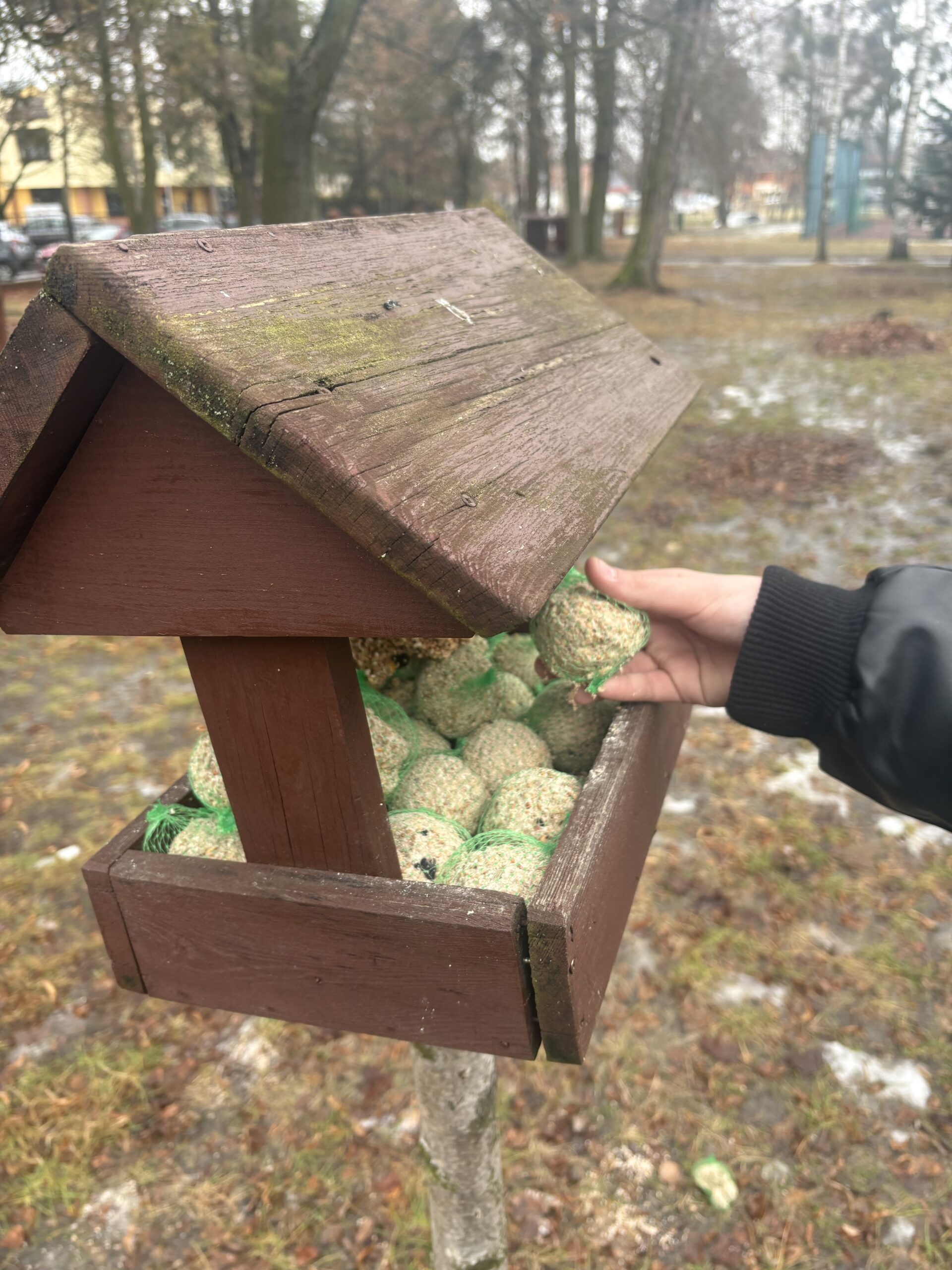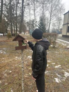 Zimą szczególną uwagę poświęcamy ptakom, którym trudno jest znaleźć pożywienie. Dzięki życzliwości dziadka jednego z uczniów otrzymaliśmy karmnik, który od tego czasu służy ptakom w okresie zimowym. Regularnie dbamy o jego uzupełnianie, zapewniając ptakom odpowiednie i bezpieczne jedzenie.